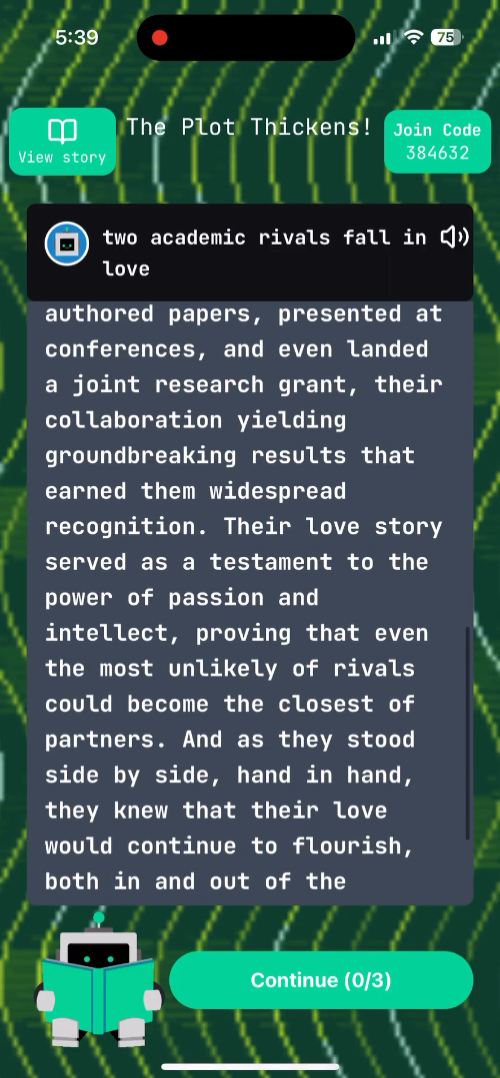 Lore is an interactive and collaborative storytelling game for anyone who enjoys creating imaginative stories with friends. Players can create groups, start stories, and vote on plot points to compete against players. Each winning plot point advances the game with an AI-generated story based on the plot point.